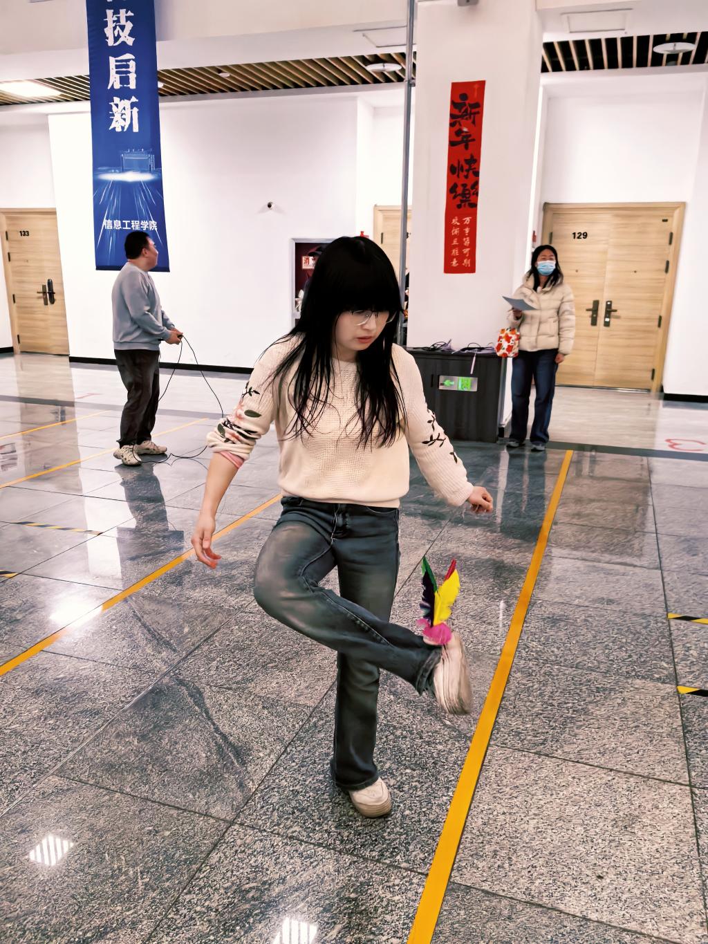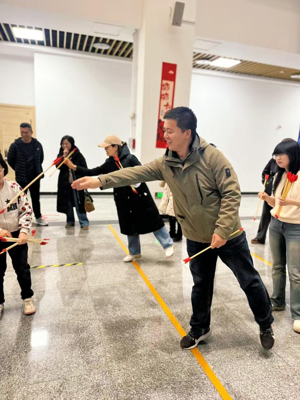 本次比赛设置踢毽子、投壶、跳绳三项兼具趣味性与参与性的经典项目,兼顾不同年龄段教职工特点,既考验个人技巧,又营造了轻松协作的氛围。赛场之上,教职工们褪去平日的严谨,以饱满热情投入比拼,现场欢呼声、喝彩声此起彼伏,现场氛围热烈而融洽。投壶区古雅尽显,选手凝神投掷、乐享古韵;踢毽子赛场灵动飞扬,彩色毽子在脚尖翻飞,喝彩声随节奏起伏;跳绳项目中,教职工们挥绳疾跃,以稳健姿态或迅捷节奏展现活力,大家在轻松比拼中释放压力、收获快乐。