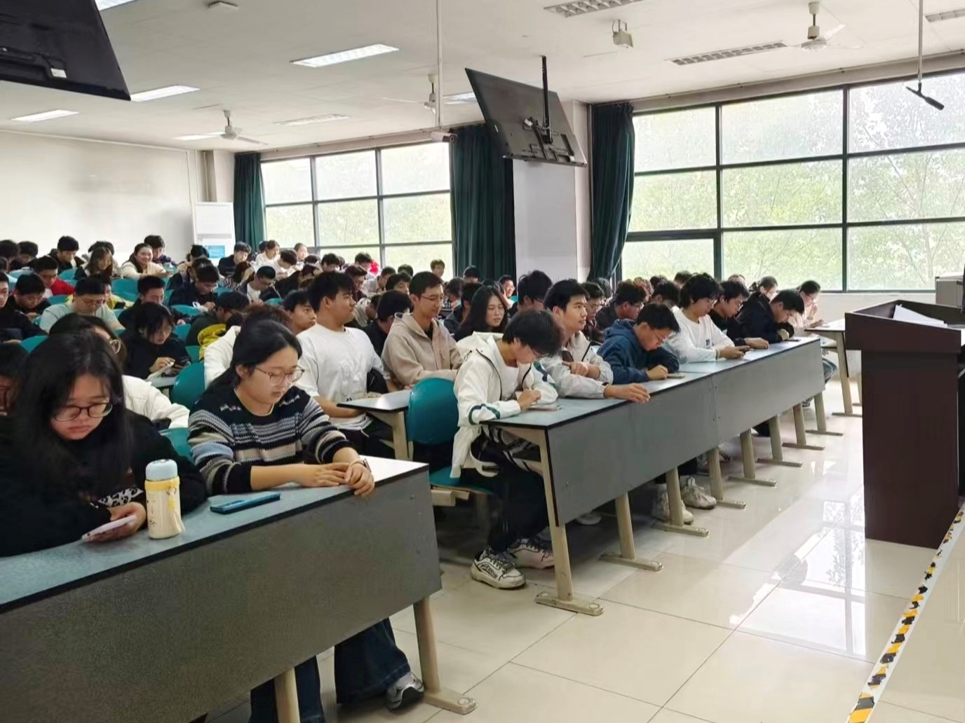 在WM1201教室成功举办了2025级新生学生手册领学主题班会。本次班会由2025级本科生辅导员吴耀东、孙超共同主讲,学院全体2025级本科生参加。