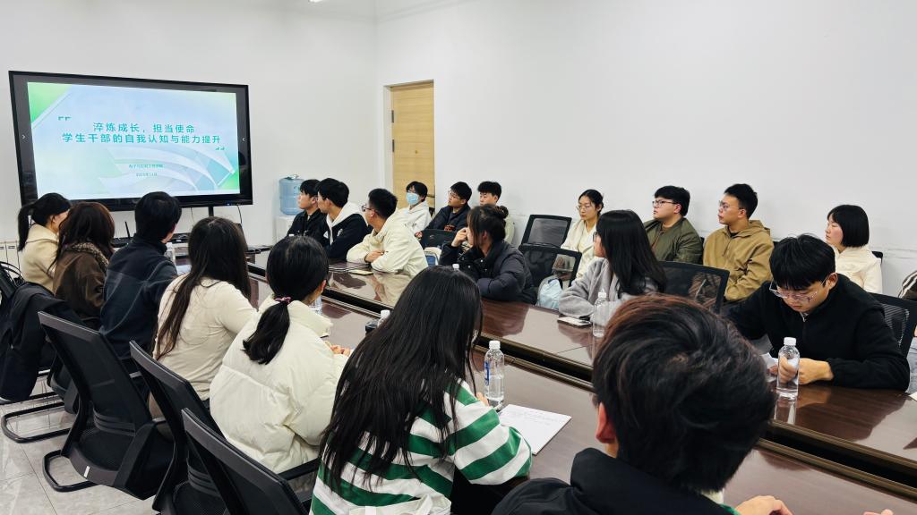 会后,王佩佩向全体学生骨干做“淬炼成长,担当使命·研究生学生干部的自我认知与能力提升”主题培训。