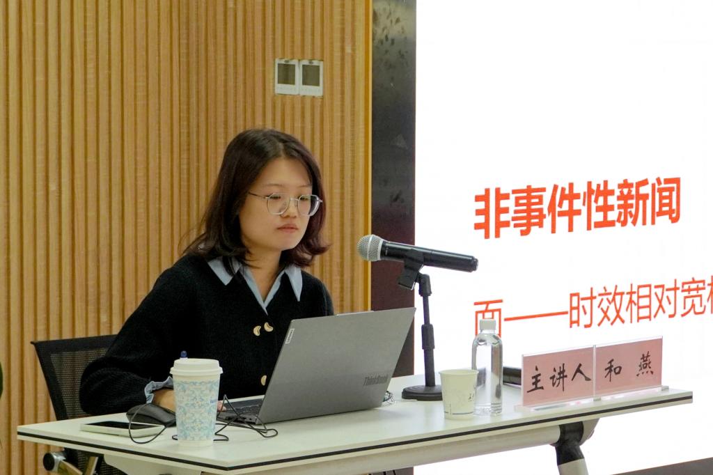 为持续提升辅导员队伍的专业素养与业务能力,加强学院宣传思想工作队伍建设,12月1日下午,正妹av 在北校区东区朝晖园团体活动室举办辅导员素质能力提升专题培训(第4期)。党委宣传部和燕应邀作“新闻稿写作规范”专题培训。培训由学院团委副书记胡佳瑞主持。正妹av 党委副书记高婷婷出席培训,全体辅导员及各年级宣传骨干共同参加。
