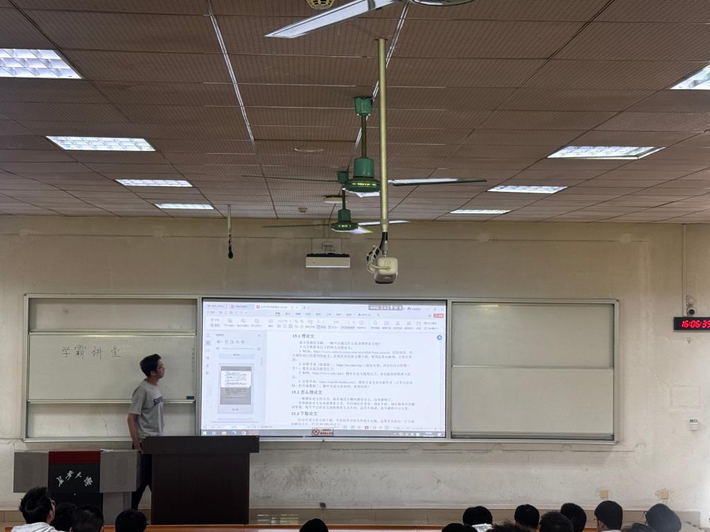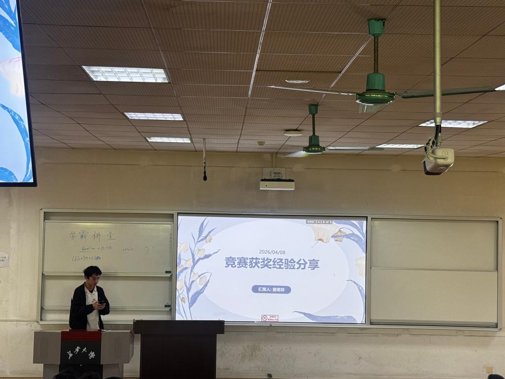 2024级本科生在WT1204教室开展学科竞赛经验分享会。本次分享会邀请国家奖学金获得者,2023级本科生原政皓、阳玉玲、查珺羿担任主讲人。活动由辅导员胡佳瑞主持。