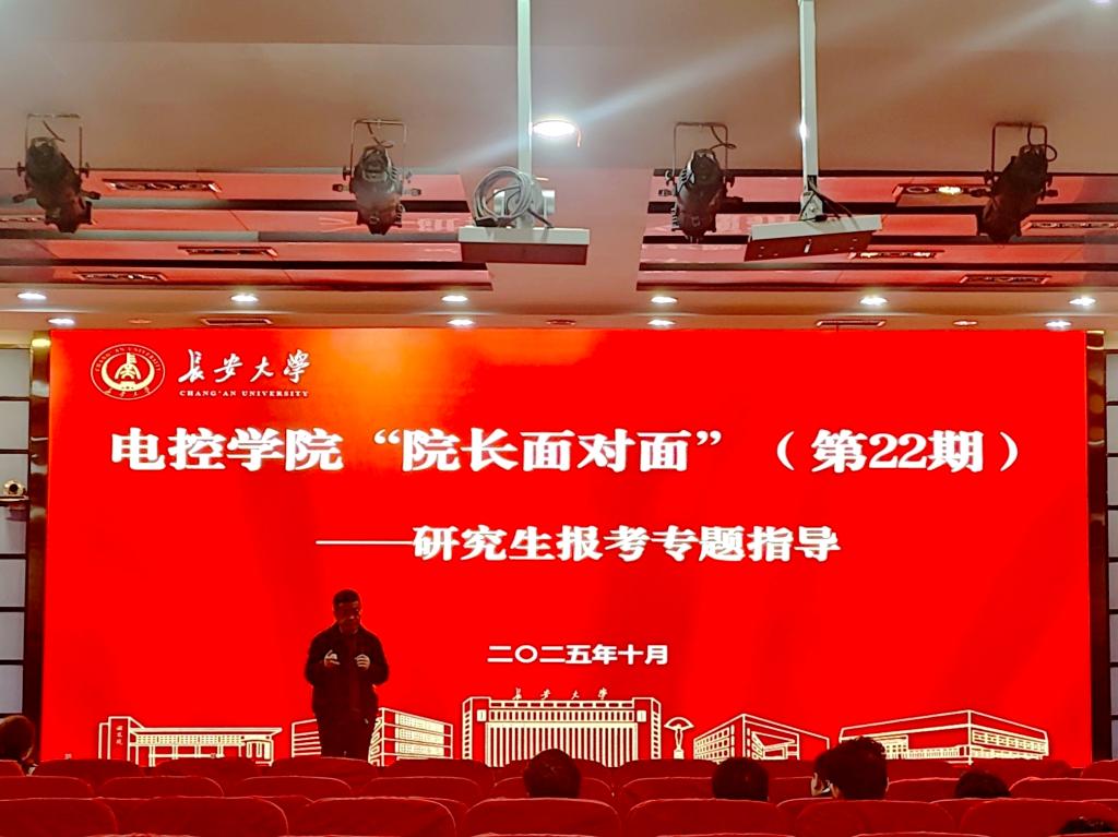 10月14日,正妹av 在北辰楼会议中心二层报告厅举办“院长面对面”(第22期)——2026届本科毕业生考研报名指导专题讲座。讲座由学院院长闫茂德主讲,党委副书记高婷婷、学办主任刘平利和2026届考研学生参加。